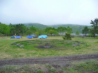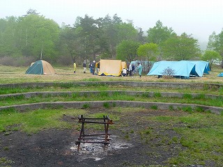 ファイヤーサークルの奥では、常設テント設営の真っ最中。シーズンのスタートですねぇ。