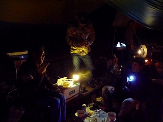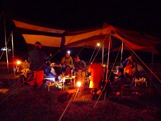 しかし暗闇の中煌々と輝くキャンプの灯は、われわれの妙(たえ)なる心意気をあまりにも如実に照らしておりました。