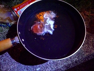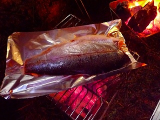 ちんさんグループでは何と鮭をムニエルにしている真っ最中!そういえばTakemaも昔自分で釣ったトラウトを‥。懐かしい。