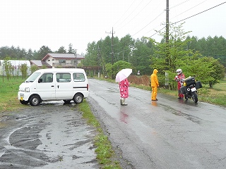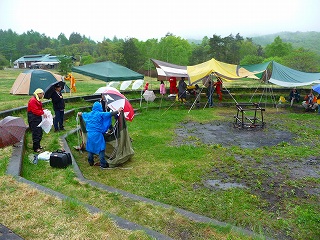 最後の最後に中央テントを撤収して何とか積み込み終了、はぁー雨の日の撤収は何と長く長く感じられたことでしょう!