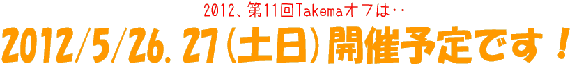 そんなわけで2011くまTakemaオフ、事前の予想通り雨模様ではありましたがまずは(雨を含めて)いつも通りのワイガヤワイガヤのうちに幕を閉じたのでありました。ご参加下さったみなさま、本当にありがとうございました。いつもながら皆さまの完璧なる雨対策には脱帽です(笑)。