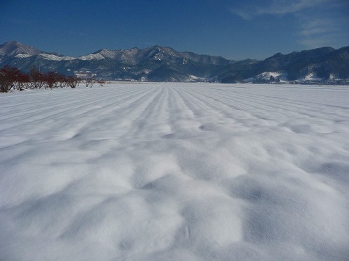 さすが山形の年末、田んぼはすっかり一面のスノーフィールドに。しかしこの数日後、おそらく50cmくらいどどんと積もったはずです。