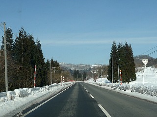 | さてお昼近くになってきたのでそろそろご飯‥いや、でもその前にこの日の宿の目星を付けておかないと‥というわけでまずとあるお宿に電話を入れてみたんですが、そのお返事は「すみません、今日は源泉のメンテが入っているのでお休みなんです」との悲しい返答。このパターンが多いのがこの時期のデフォルトというわけで、しっかり事前に計画しておきましょうね皆さん!(自虐)。 で、別温泉地の別の宿に電話を入れてみたら「2食付き8000円(暖房費込み)」というわけで、近くにコンビニもなかったはずなので夕食付きにしてもらいとりあえず宿無し芳一の危機は去りました。よしそれでは北上しますか!でもR13経由では面白くないので長井から寒河江経由で尾花沢を目指します。当然ながら尾花沢までは路面の積雪完全ゼロで路面もほぼ乾燥、この時期とは思えない楽勝ロードでした(この2日後にはとんでもない降雪があったようですが)。 |