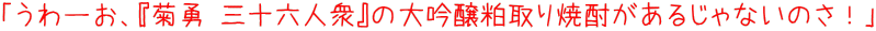 さて尾花沢に近づいてきましたんで「どこかで今宵の酒を‥」という感じになってきたときに「地酒」の文字がぱっと目に入ったので「いとうや」さんへ。何だかコンビニのような店構えで確かにお酒以外の食品も売っていますが、何だかお酒のラインアップもちゃんとしてるじゃないですか! 最初はそんなつもりもなく「躊躇無くどこかの芋焼酎4号瓶を手にして会計」したんですが、車に戻ったところで「ちょっと待てよもう少しちゃんとお店を見てみよう」と思い直して再び店内へ。うん?これは? |