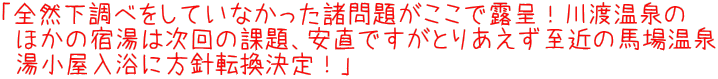 あれまぁ。時間的にずいぶんかかることもありおそらくはこちらも「年末の大掃除」の一環だったのかなと思われます。そんなわけで高東旅館にフラれたTakema、それじゃ川渡の他の湯へ‥?いやそれが(笑)。 |