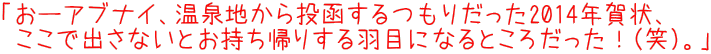 というわけで阿部旅館到着!「こんにちはぁ」と玄関で声をかけると女将さんが出てきて下さいました(SNSつながりのある若女将は外出中とのこと)。上記の旨を申し上げた上で2枚購入完了!よぉっし胸のつかえが1つ取れました!(案外いろんなもんがつっかえていたりするのかもしれないTakemaです)。そんなわけで辞去申し上げようとするところで、女将さんから驚愕の事実が!以下にその時のやりとりを再現してみましょう(一部に脚色があるのはいつものとおりです御了承下さい)。 |