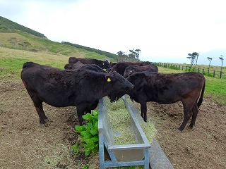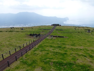 それはともかく、青ヶ島渡島前日にこの鉢巻道路までは上がってきたのですがここふれあい牧場には立ち寄りませんでした(夕日見物が目的だったので方角的に合わなかった)。でもここに島内でも一番の展望台があるということですので「本日是観光」のわれわれとして訪問は当然の助動詞べしそのものなのであります(何だか力ずくの展開ではありますがまぁヨロシク哀愁失恋レストラン)。