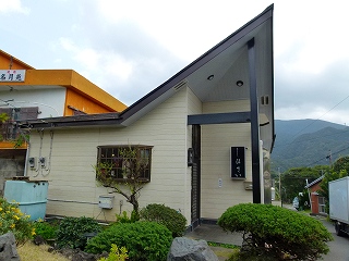 さて続いては温泉!中之郷の交差点から裏見ヶ滝温泉方面へと下り、、藍ヶ江港の上にある「やすらぎの湯」へ。しかぁししかし!