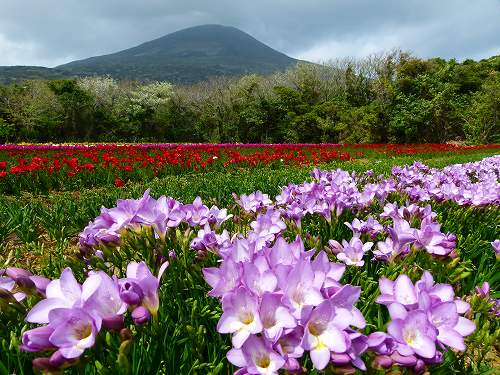 さてお腹も満ちたあとは次なるスポットへと向かいましょう。八丈島ではいわゆる春休み時期(3月下旬から4月上旬)に「フリージアまつり」を開催しています。しかも今年で「第47回」ということですから長い歴史があるんですね(わたしの上司は幼少のみぎり八丈島に住んでいたことがあるそうなのですが、わたしが旅行後「八丈のフリージアまつり‥」と申し上げると「うわー、懐かしいなぁまだやってるんだ!」と喜んでいました)。