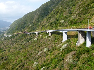 で、ここからは再び島の南西部にある中ノ郷へと向かうべく峠道=すっげー!高速道路みたいな立派な都道を進みます(スゴイのはこの区間だけですが)。