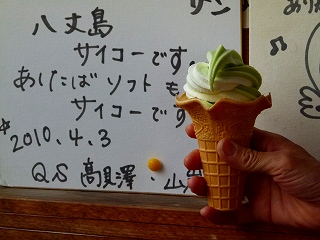 また八丈牛乳のアイスクリームも食べられましたよ(ただしソフトクリームじゃないので固かったですが‥実はあのふれあい牧場産の牛乳は島でもけっこう入手困難な状況なのだとか=学校給食に優先納入しているので、ということでした)。