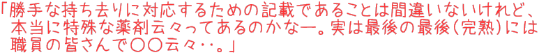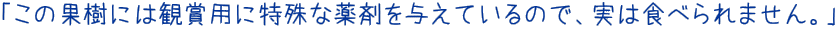 まぁほとんど無人の温室ですし、果樹木においては一番の「見せ場」が「実際に実が付いている状態」なのですから、その実を勝手にむしり取られたりしたら最悪ですよね。その意味でこの但し書きは「無言の警告」だと思いますし一定の抑止効果もあるだろうと思います。でもね、ついつい大好きな「裏読み」をしてしまうTakemaが考えたことといえば‥