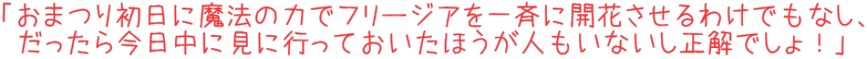 で、この2013年春のおまつり開催期間は3/20-4/7だったのです。でもこの日は3/19、まだおまつり期間じゃなーい!でも‥