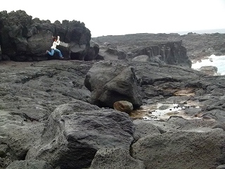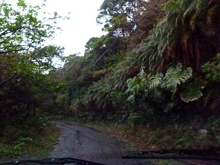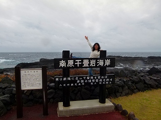 そんなわけで永郷地区へと向かいます。と、考えてみれば八重根港経由で海沿いを走るこの道だけは通っていなかったな、これで島内の主要道もほぼ全て走ったことになるな、でも雨だな残念‥と思っていたら、このルート唯一?の観光地「南原千畳岩」まで来たところで何と!雨がやみましたぁっ!肝心なところで天気をナントカしちゃう、これぞおしんこどんパワーなのであります。 ただしどこかで書いたように、このパワーは「Takemaと2人での行動時に限定して発揮される」ようなので、Takemaオフ会等多くの人が集まる場合はまったくあてに出来ないのが残念なところです。ま、雨が降ってもタープがあるさ濡れればいいさ(やけくそキャンプ讃歌)。 |