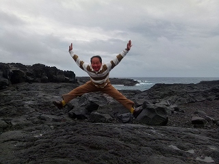 そんなわけで八丈太鼓ナイトをタンノーした上で宿に戻りましたが‥あ、こわっぱさんとのツーショットは左上画像マウスオンにて。とはいえご尊顔の掲載は畏れ多いのでボカシております(当然です)。 さて夜中のうちはそこそこ雨の音もしていましたが、朝になると風も穏やかな上天気。さーてそれでは今日は三宅島に向かおうかなと思っていたところでとんでもない島内有線放送が!それは‥ |