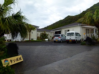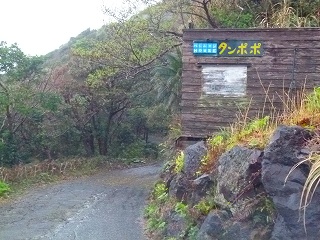 今夜の宿は「民宿タンポポ」さん。八丈島の民宿が空港の周りに集中しているので、昨日に引き続きあえてそのエリアを外してみたわけですが、先ほど訪問したフリージア摘み取り園(メイン会場)の担当者の方が「あー、あちらの民宿は食事が美味しいですよ」とおっしゃっていたので期待大なのです。なお左上画像は都道からの分岐にある看板です、民宿の母屋ではありません(笑)。ここからは右上画像の道をずんずんと下っていきます。すると‥ |