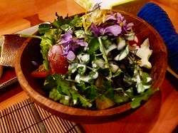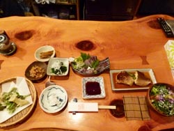 | 肝心な室内画像がないのが今となっては残念ですが、最初から布団が敷かれているという嬉しいシステム。これについてはさまざまなご意見があると思いますがわれわれは旅館でも「いつでもごろりOKが一番」なので、お客の夕食時にわざわざ敷きに来るシステムは好きではありません。 ついでにいえば部屋食もTakema個人としてはうっとうしいんです。だって、部屋に入ったらゆっくりしたいじゃないですか。でもこれも生来の貧乏性のなせるわざなのも知れませんが。同じような感覚が海外(および国内の高級)ホテル併設のレストランで必ずせねばならない「ワインのテイスティング」です。ワインの品質に不安定感があった昔はともかくとして、今やハウスワインでもお値段相応の品質が保たれていると思うのに‥あ、それはそれとしての「儀式」なのか。でもその「儀式」を面倒に思ってしまうのは、やっぱりTakemaの育ちがナニなんですかねぇ(笑)。 というわけで夕ごはんタイムとなりました。こ、これって!たぶん八丈島4泊目にして一番凝った夕食かも? |