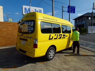 | もちろん港や空港への無料送迎つきですので、右上画像の車に乗り込んでおしんこどんの待つ空港へ戻ります。今回の旅行中この空港にはのべ何回来たことでしょう(笑)。でもさすがにこれで最後ですお別れです。予定より2日早く帰っちゃうことになるんですが、いやいや十分楽しませていただきましたよ。というわけで空港内の観光案内所でスタンプラリーの用紙を提出しようとしたら、ん?案内所の方とはどこかでお会いしたことがあるような? |
