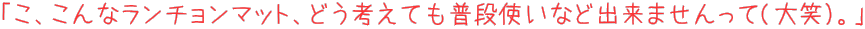 いやちょっと待て、しつこいようですがこれは「ランチョンマット」じゃなくて「テーブルセンター」(文字通りテーブルのセンターに置く飾り布)なのですよ。無理に各席で牛乳とかケチャップとかをこぼす必要はないわけです(何のこっちゃ)。 しかしこりゃたぶん高額品だぞー。Takemaが現地で買った同じく黄八丈の名刺入れだってウン千円したんだから(笑)。というわけでこの現物はTakemaオフに‥いや持って行きませんので念のため!そんなわけで観光協会をはじめとした皆さまありがとうございます大切に使わせていただきます! そんなわけで八丈島&青ヶ島編、これにて完全終了です。無駄に多いテキストを最後までお読みいただきありがとうございました。 |