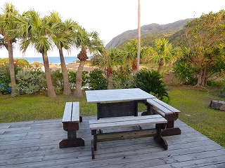 しかし夜の静養により?朝にはお腹も完全復活しておりました。この日もお天気がよく、いわゆる「青ヶ島渡航日和」というやつですね。宿のウッドデッキからは南国の朝を思わせるすばらしい逆光系の景色を見ることが出来ました。 さて朝ご飯前にお散歩に行ってきましょう。東海汽船が発着する底土港は宿からすぐなので、ここから御蔵島や三宅島に向かう時の下調べよろしく港の施設などを見に行くとともに「朝の軽い運動により朝ご飯をより美味しく食べよう」という算段です(人生前向き時々でんぐり返し)。 |