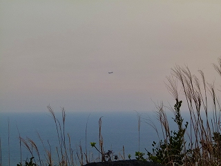 そんなわけで夕やけに間に合わせるべく鉢巻道路へと上がっていくところで、八丈島空港を飛び立った「第3便@羽田行き最終便」の姿をキャッチ!この時間には南西方向からの風が吹いていましたから離陸も容易だったと思われます。 ただ「この空の色」から考えるに夕焼けはあまり期待できそうにない?そう、それはあまりにもその予想通りでありました!(笑)。だってさ、 |