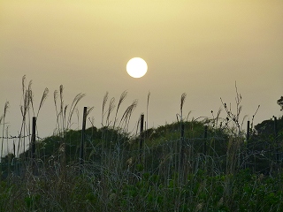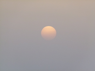 夕焼けを見に車を飛ばしてきましたが、空は大して燃えることもなく、やがて太陽はかすみの中に消えていきました。 |