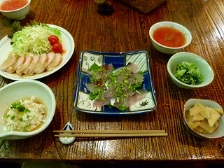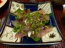 そんなわけで夕食のお酒は黒生ビールとおごりました。「単なる海の幸攻撃」ではなく、春トビはカルパッチョに、島豆腐も特製ソースで、アシタバといえば天ぷらが定番ですがあえて独特の苦みを残したおひたしに、その他にもいい感じのアレンジが施された料理が出てきました! |