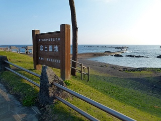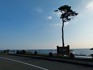 ターミナルのすぐ脇には「底土園地」なるおだやかな砂浜があり、ここが島の海水浴場となっているわけですが‥やっぱり狭いですね。で、その看板の後ろにただ1本だけ高く伸び上がる松の木!「陸前高田、奇跡の一本松」をホーフツとさせる潔さです!でも津波まで真似をして押し寄せたりしないことを切に願います。でもこの木も吹きっさらしの中ここまでよく成長したよなとしみじみ(台風とかの時はスゴイ風だろうに)。 |