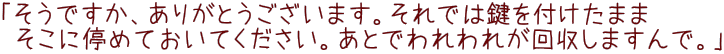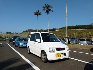 さてこのあとは宿に戻って朝ごはん♪。もちろんTakemaの体調も回復していたので朝ご飯を美味しくいただきました(画像に影が多くて見づらいですが、いわゆる「日本の正しい朝ごはん」系でありました。もちろん普通に完食(おしんこどんはご飯おかわりね)。 ふと壁を見ると‥あー、これって吊し雛ですね。やっぱりこの宿はいろいろとおしゃれだぞ。リゾートがお似合いのわれわれTakema夫婦にはぴったりであったということがこれで根拠なく立証されたことになります(笑)。 そんなわけでいよいよこの日はヘリで青ヶ島入りなのです。穏やかな好天ですからヘリは間違いなく飛ぶでしょう。で、いざ空港へと向かうわけですが、レンタカー借り出し時にはこのようなお話しをいただいておりました。「空港の一時置き駐車場に到着したら事務所に電話を入れてください。スタッフが引き取りに行きますので」。ということで仰せの通り電話を入れてみると‥ |
