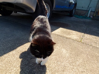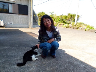さて中里さんまで戻ってくると、妙になついた猫がやってきてゴロゴロ。よせばいいのにきちんとポーズまでとってくれます。でも、あとで聞いたところによるとどこの飼い猫でもない野良なんですと。でも、「この子はアタマもいいのよね、建物の中に入っていくと怒られるから絶対入って来ないし、で、このなつき方だから長期のお客さんたちにもかわいがられてるんですよ」とのことでありました。うーむキミはこの島で生きていく術をしっかり身につけたようですな(笑)。