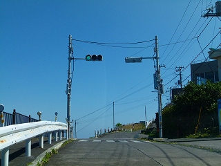 そういえば北大東島などでは信号がきちんと定期的に赤になったりしていましたが、こちらは「押しボタン式」ゆえ、当然のごとくわれわれの滞在中この信号が赤になっているのを見たことはありませんでした(笑)。ただしここは島の小中学校のすぐ下にあり、なおかつすぐ下には体育館があるようなので、平日の学校活動中には一定の利用があると思われます(あくまで「一定の」ですが)。