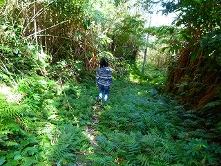 さてそれでは、車で行かれるところにどんどん行ってみましょー。最初に目指したのは島の北部にある「ジョウマン」という場所でありましたが‥竹がうっそうと茂る大地の途中でいきなり道が終了してオシマイ。特に何があるわけでもなく「?」という感じでありました。ちなみにこの辺り一帯を含め青ヶ島全島に生えているのは「庭竹」という、まるで笹のように細い竹です。これじゃタケノコも細いだろうなー。