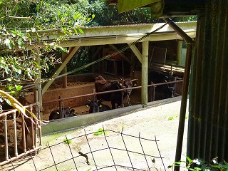 実は青ヶ島は伊豆諸島の中でもほとんど唯一といえるほどの肉用牛の産地。というのも、ここで生まれ育った肉牛は生後1年弱で本土に出荷されているそうなのです(八丈島の牛は乳牛?)。ちなみに青ヶ島では昔から牛が大切にされていたそうで、池之沢のふれあいサウナ管理人さんから聞いたところによると「だって、今のように道が整備されるまでは港から集落まで牛の背に荷を乗せて運んだんだから」。あーなるほど。