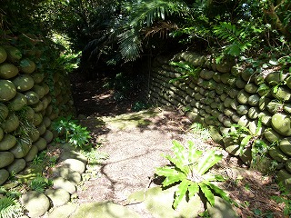苔むした玉石の垣が出てきておーっと思いましたが、その先には草の生えた平地があるばかり。そりゃそうだ「屋敷跡」ですからね。でも場所的に風が当たらない場所に住居を造ったんだなということはよくわかりました(その代わり湿気はそこそこありそうな場所でしたが)。