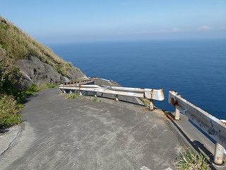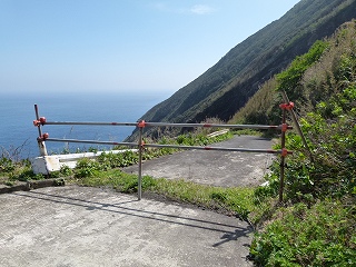 実は「島の港が三宝港だけではあまりにも心許ない」ということを考え、島の東側にある大千代に降りる道を整備し、何とか使えるように桟橋も造成‥。でも、港に降りていく道路の一番最後の区間が崩落し、しかもバイパスなど造れるような余裕もない地形なのでそのまま放置&現在に至るというのが実際のところのようです。でもまぁ、行かれるところまで行ってみましょ。