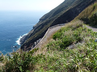 で、ここから進んでいく三宝港へと通じる道はいわば「島の命綱」ともいえるルートで、島唯一の港から生活物資が運ばれてくるわけですから、この道のどこか1箇所でも崩落したりしたら大変です。しかし島の地形上、「ひえー」というような感じの場所もあるのですが(苦笑)。