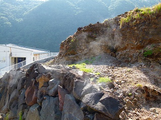 さすがカルデラ内ということか、建物の手前にも噴気帯があったりします。でもさらにその手前にはその噴気を利用した「トキメキの調理施設が」あるのです。その名も「地熱釜」!