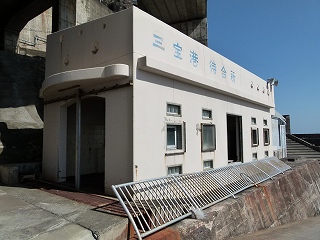 まるで高速道路の下といってもおかしくない場所、建物には「三宝港待合所」とありますが‥