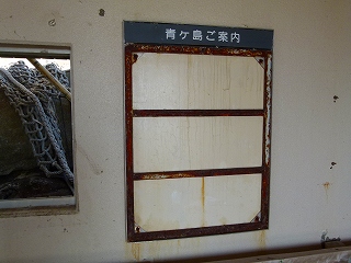 内部にはかつてここが青ヶ島の玄関口であったことを示す掲示板の跡が。そして勝手知ったる感じで屋上に上がってみると‥嗚呼。
