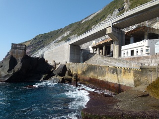 ま、「今のところ復活させる予定はない」ということですから当時入れた方々は本当にウラヤマシイ。ちなみに海岸沿いの黒崎なるところには海中温泉もあるそうですが‥たぶん集落から行こうとすればとんでもない場所にあるんでしょうね。というかここ三宝港の土木整備工事を見てください!海岸に下りるにはこれくらいしなきゃダメなんですから!