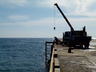 両上画像だけ見ていると別に何だかわからないかも知れませんが、右上画像にマウスオンしてみると「激しい波浪の中で苦闘する潜水作業員」の方が現れます。こ、これはまじめに大変だわ。
