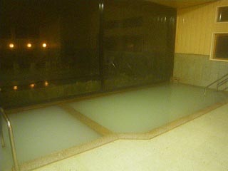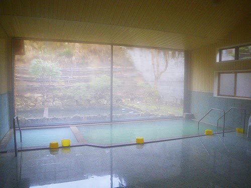 ただしさすがにこの時間になると「あれだけの入浴客が云々」ということで湯の新鮮さは期待できません。この濃い白濁は湯が劣化している現れであることは翌朝の画像と比較してもらえば一目瞭然なのです。そして絵的にも明朝が勝負だなと思いつつ湯を上がると、清掃のためお越しになった宿の管理人さんが。というわけでしばしお話を伺うことに(以下当時のメモ)。 |