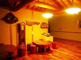 基本的に木をたっぷり使った造りで、「さすが建設会社が造ったお宿」というところ。なお右上画像にマウスオンするとお約束の但し書き画像に変わりますが、加温はともかく塩素臭は湯を入れ替えたばかりの翌朝を含めて一切感じませんでしたよ。 |