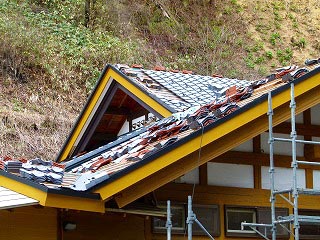 閉店間際の道の駅五城目でちょこっと買い物をしたあと、目指したのは「湯の越の宿」。何でも湯がいいとのことで出発前日に予約しました(が、勘違いしていたこともありました)。 母屋はともかくその他は屋根の葺き替え等の改築中で、このあとは雨予報が出ているんですが大丈夫なのかな?まぁとにかくチェックイン。 |
