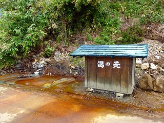 昨日通った時にはなぜか完全に見落としていましたが、こちらに湯の越温泉の旧源泉が自噴しています。車から外に出てみると、宿の湯の数倍といえるであろう強い硫黄臭が。昨日は車の窓を閉めたままで通過したため、このにおいを感知できなかったんです。温泉探索時の鉄則「車での移動時には窓を開け嗅覚器官にて常時探索を継続すべし」(たった今思いつきで作った標語ですが)を全く無視した行動だったわけですね(笑)。 湯温を計測したわけではありませんがいわゆる「ぬるつめたい」系で、「PでAする(濃い系温泉ファンの隠語)」のもここでは結構勇気が要ります(笑)。というかここ自体が開けた場所にあるので、PはともかくAは別の場所に移動してからコトに及べば‥ま、わたしゃAはしないのですが(何のこっちゃ)。 上の方でも書きましたがここが「以前はもっと湯温が高く云々」の小学校源泉なのですね。しかし何ともモッタイナイですなぁ。関東圏なら掘ってでも出すのに(笑)。 |
