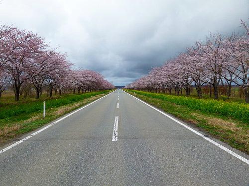 脱衣場を見ると先客さんが10人くらいいるようだったので潔くカメラは持ち込まず。塩素臭が酷い時もあるということでしたが、幸いなことに訪問時にはそう大したレベルではなく「うっすらとはするけれどね」という感じだったのでヨカッタ。お湯は公式サイトのとおり茶褐色のモール泉ですが同時に強食塩泉でもあり(というか泉質は「ナトリウム-塩化物強塩泉」なのです)、湯上がりに汗が引かないのはご想像のとおり。湯上がりにサイダーごくごく行動に出たことは言うまでもありません。 ちなみに駐車場の周りに植えられていた桜の木々は三−五分咲きくらいでした(右上画像マウスオン)。「何だよもっと咲いてるじゃないか」という方々、これは数ある木々の中から「一番咲いている木の一番オイシイ部分をピンポイント撮影したもの」なので念のため。なお桜の場合、満開に見えても実際はまだ八分咲きくらいだったりするので‥。 で、このあとはほど近い場所にある道の駅で買い物などした上で、大潟村が売りにしている「桜&菜の花街道」へ。この日は平日だったので車の通行量は少な目でした(でも以下の画像では「車ができるだけ写らないタイミング」まで待って撮影しています=そこそこは通るし駐車車両も場所によってはありますし)。 |