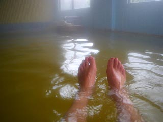 ![]() − その6 湯の越温泉泊、翌日は初めての八郎潟、続いて船沢温泉の塩湯へと − ![]() はふー、この界隈でかけ流しの硫黄泉に浸かれるとはシアワセ。 |
