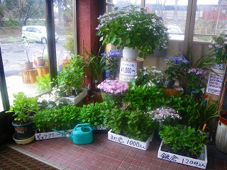 ![]() 玄関内ではなぜか各種のアジサイが販売されていました。 |