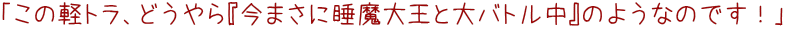 あちらは70km/h程度のスピードで運転していたのでしたが、次のICかPAまでもちそうになかったら路肩停止でもいいから早く休みなさい何とかしなさいって! さて追い抜き地点から10分ほど進んだあたりの太平山PAでわれわれもトイレ休憩。トイレから出てきたら「あ、さっきの青軽トラがPAに入ってきた‥へ?正規の駐車場区画とは全然別の思い切り端っこで『がっくん』と停止したぞ?」 上で「睡魔」と書きましたが、万が一緊急事態だったら大変なので念のため(あくまで野次馬根性じゃないよ(笑))見に行ってみると、そこには‥ |