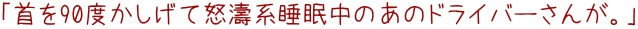 よって当然ながら車体はふらーりふらり、特に路肩側へのふらつきは激しく時には車両のほぼ全てが路側帯に入ってしまうことも(たぶん「残されたわずかな意識」でもって反対車線へのはみ出し=ポールなぎ倒しだけは回避していたのでしょう)。Takema車は当然車間を取って警戒してはいましたが、いかんせん1車線区間ゆえ抜くこともできずハラハラどきどきモード。 やがて追い越し車線区間に入ったので急いで追い抜きがてら運転席をのぞき込むと‥ |